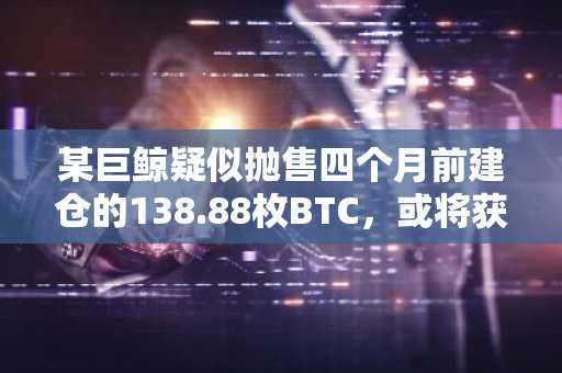 某巨鲸疑似抛售四个月前建仓的138.88枚BTC,或将获利286万美元