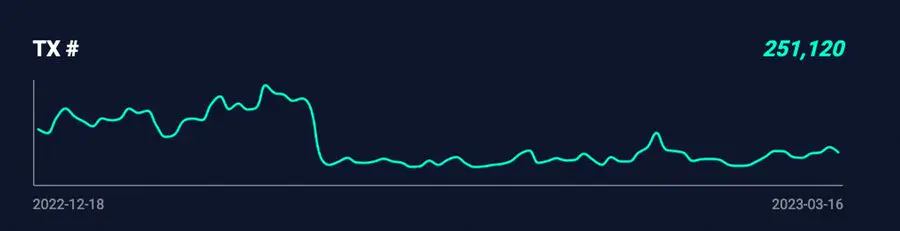 但是考虑到$ARB代币预期已经被释放后,Arbitrum上的交易笔数和活跃用户数可能会有一定的下降,参考我们工具面板上的OP链上数据