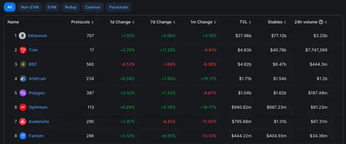 3、公链的生态情况对比