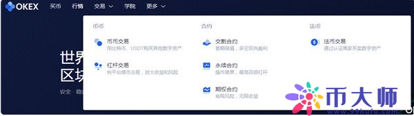 1、打开OKEx官网,点击网页上方交易——币币交易,进入币币交易区。