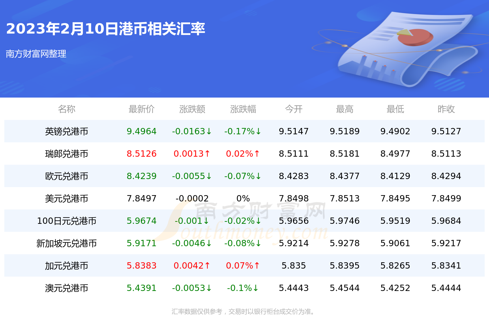 根据2023年2月10日汇率,港币兑换澳币汇率最新价0.1839,今开价0.1837,昨收价0.1836,最高价0.1843,最低价0.1833。