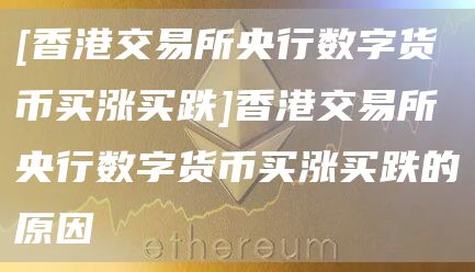 [香港交易所央行数字货币买涨买跌]香港交易所央行数字货币买涨买跌的原因