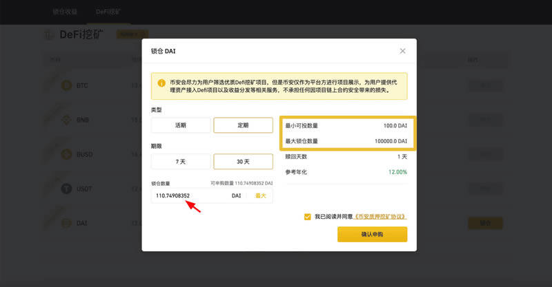 输入锁仓数量后,点击“确认申购”,即可成功申购。