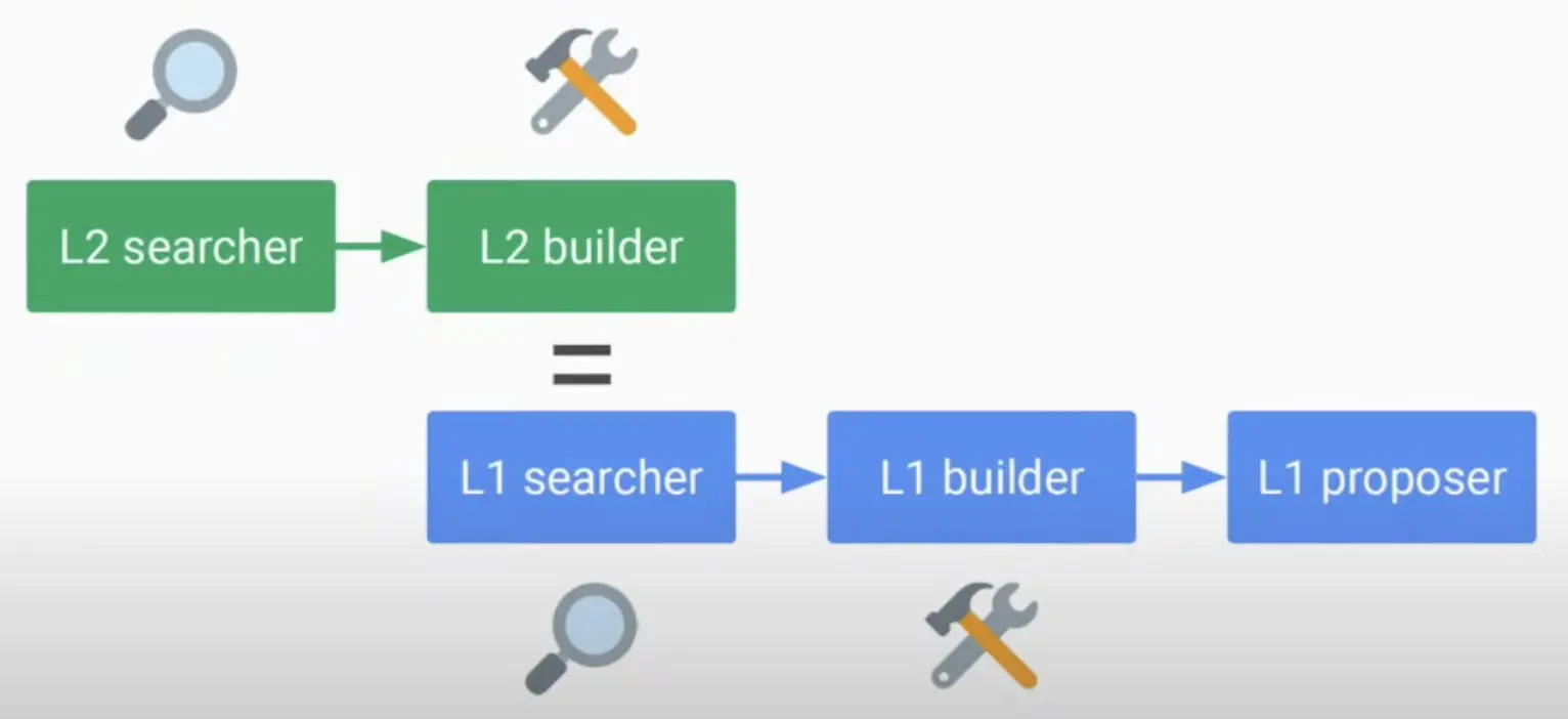 当下整体观察来看,Based Rollup算得上以太坊二层扩展方式的巨大转变,将Rollup的排序直接委托在一层提议者,利用提议者与构建者的分离设计, 让一层为 Rollup 执行所有的排序者角色。同时也让MEV得到扩展,这样 L2 搜索者可将交易捆绑发送给 L2 构建者,同样后者也是 L1 的搜索者,而这些完整的 L2 区块随后成为 L1 区块的一部分,最终由 L1 构建者和以太坊主网处理。