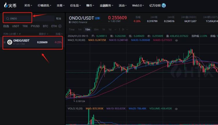 ONDO币购买和出售可以在线的火币、芝麻开门、抹茶交易所、库币策16家交易所内进行,需要注意的是,ONDO币上线币安交易所的永续合约。下面是在火币交易所进行ONDO币的购买和出售: