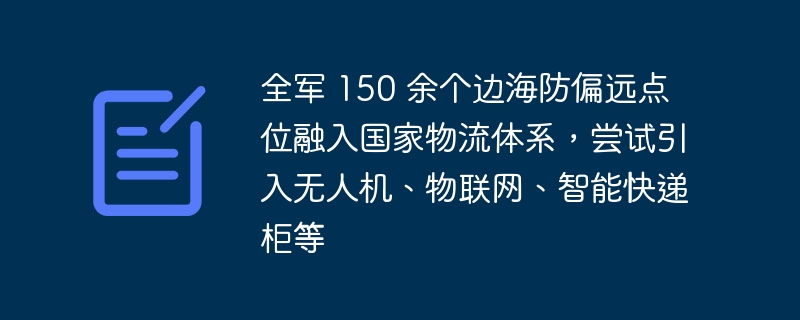 全军 150 余个边海防偏远点位融入国家物流体系,尝试引入无人机、物联网、智能快递柜等