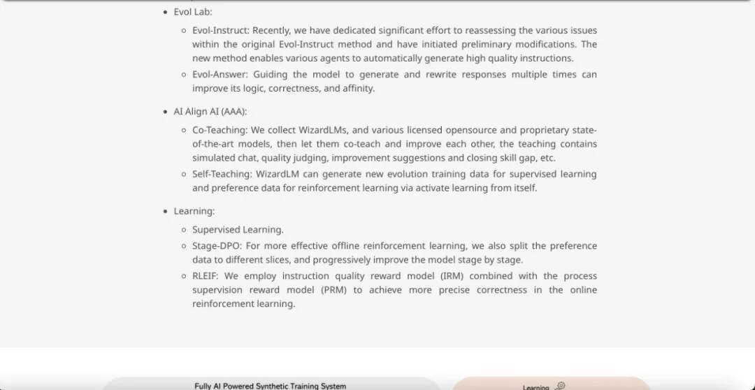 - Self-Teaching:WizardLM 可以通过激活学习,为监督学习生成新的进化训练数据,为强化学习生成偏好数据。
