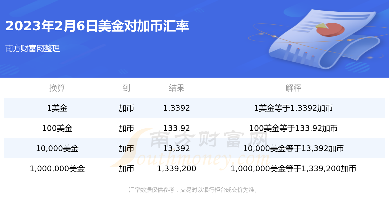 南方财富网为您提供美金兑换加币汇率最新价格详情。