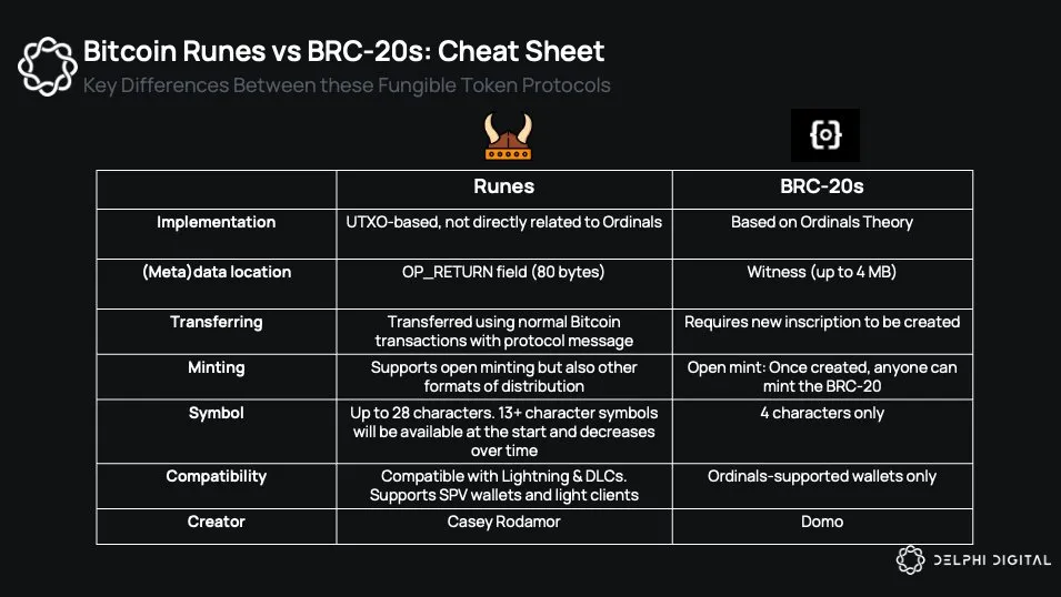 Delphi Digital针对BRC20和Runes的比较表(推文)