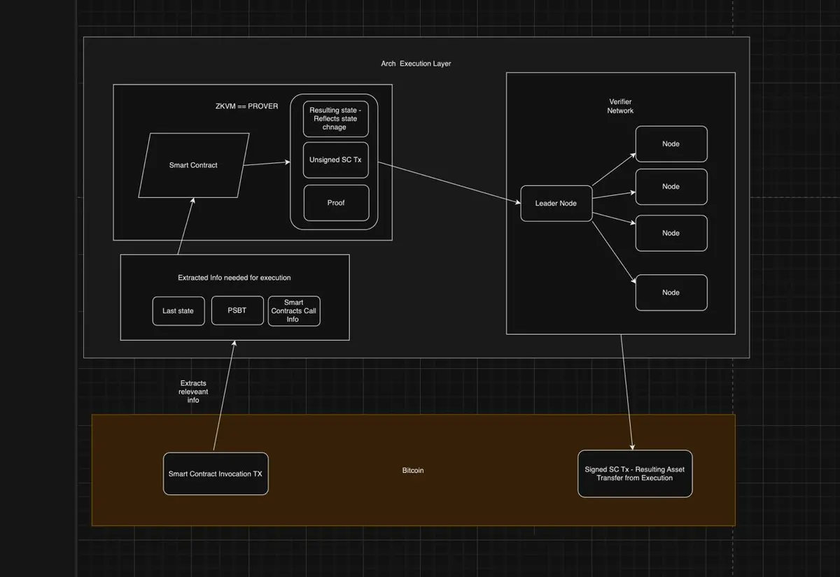 Arch 要做的不是比特币的 L2,而是将可编程性直接引入到比特币之上。Arch Network 是一个并行化的 PoS 网络,使用 ZK 证明来增强比特币原生可编程性。该网络由一个基于 Rust 的 zkVM(称为 ArchVM)和一个去中心化的验证器网络组成。