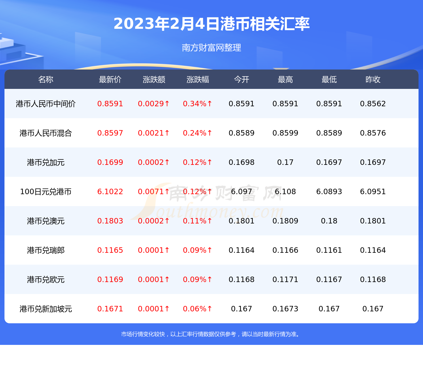 (币安app下载汇率频道)以上是币安app下载小编为大家带来的最新港元对人民币汇率,更多财经资讯,理财百科欢迎关注本站。最后提醒大家投资有风险,入市须谨慎。本文内容由互联网用户自发贡献,该文观点仅代表作者本人。本站仅提供信息存储空间服务,不拥有所有权,不承担相关法律责任。
