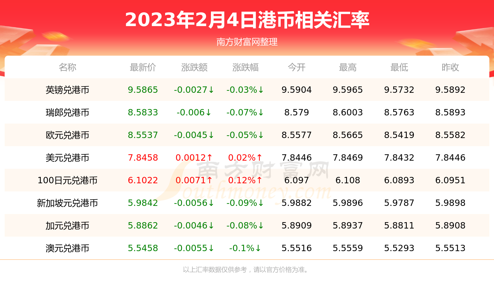 (币安app下载汇率频道)以上是币安app下载小编为大家带来的最新港元对人民币汇率,更多财经资讯,理财百科欢迎关注本站。最后提醒大家投资有风险,入市须谨慎。本文内容由互联网用户自发贡献,该文观点仅代表作者本人。本站仅提供信息存储空间服务,不拥有所有权,不承担相关法律责任。