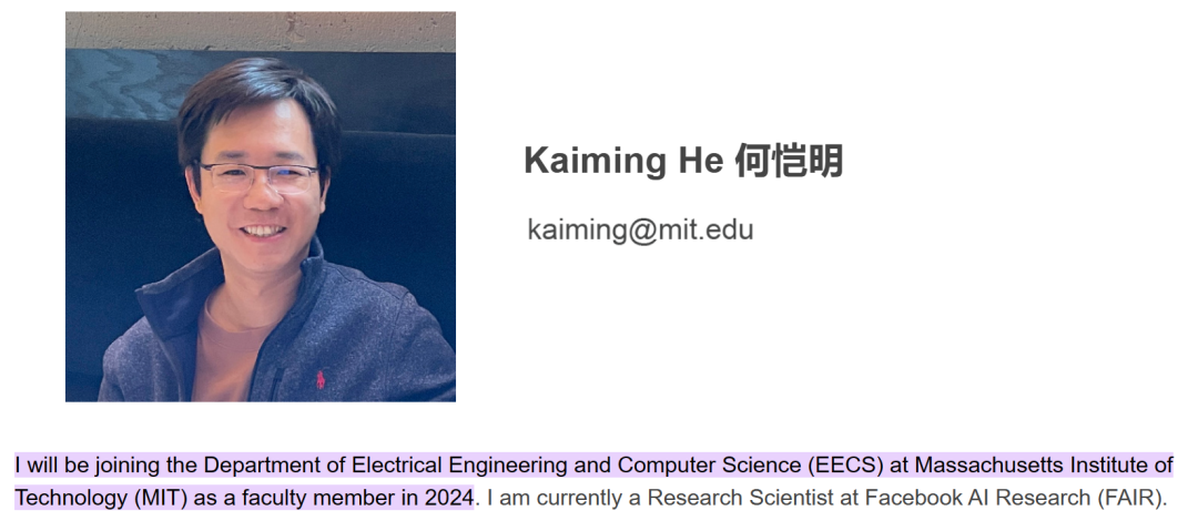 其实,加上今年 7 月底宣布回归学界,将于 2024 年加入麻省理工学院(MIT)电气工程与计算机科学系 EECS 担任教职的何恺明,FAIR 近年来已经走出了很多 CV 领域的大佬。