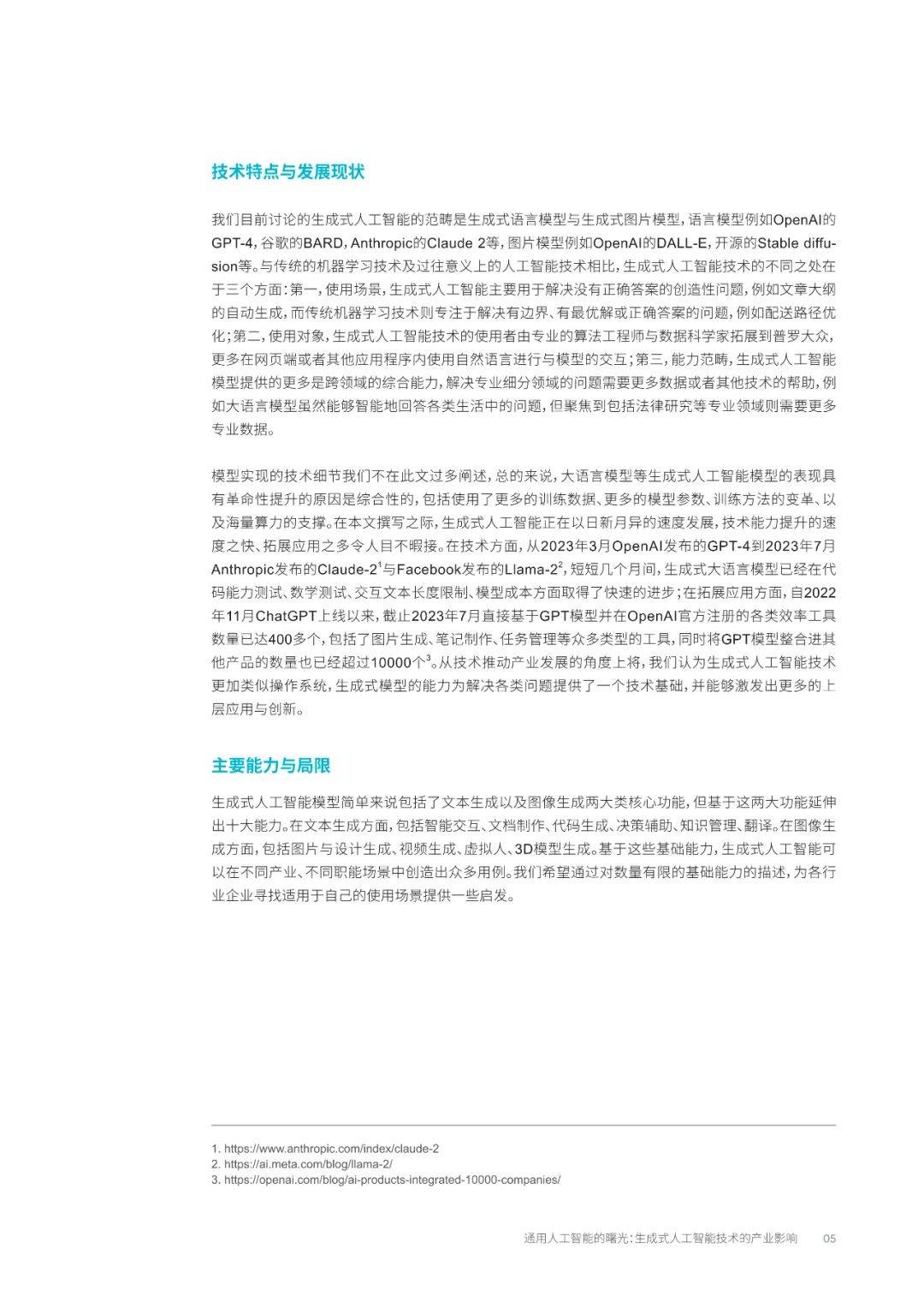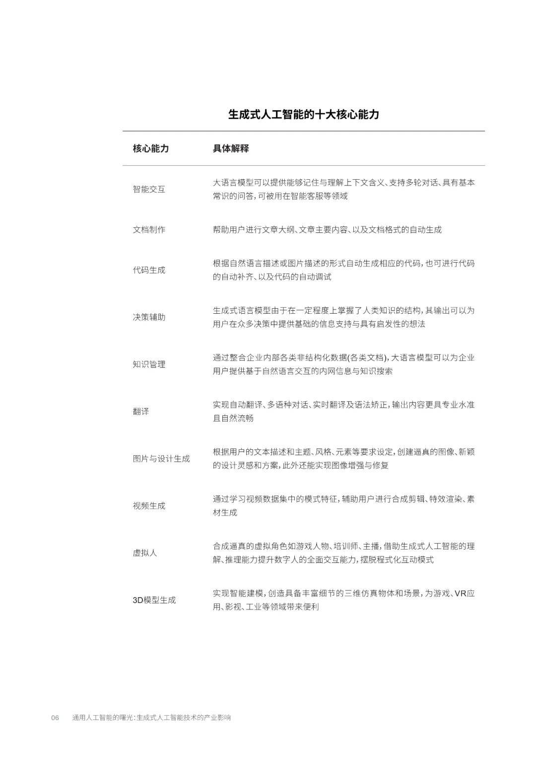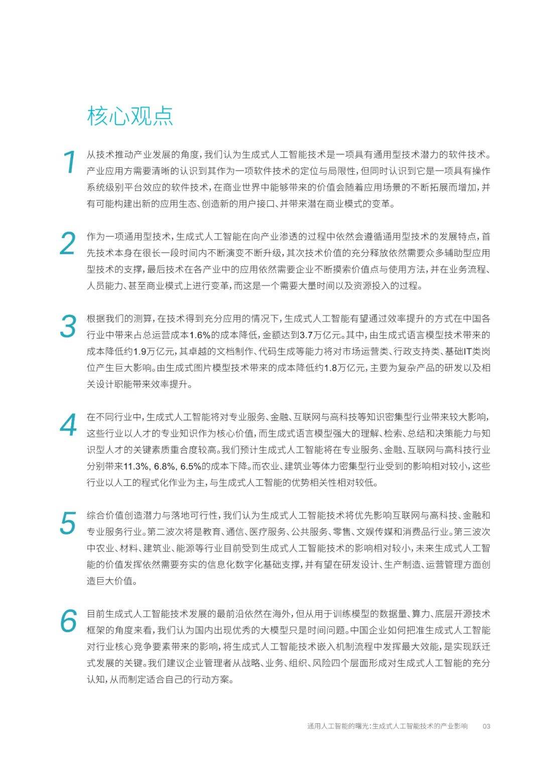 从技术推动产业发展的角度来看,我们认为生成式人工智能技术是一项具有通用型技术潜力的软件技术。产业应用方需要清晰地认识到它作为一项软件技术的定位和局限性,但同时也要认识到它是一项具有操作系统级别平台效应的软件技术。在商业世界中,随着应用场景的不断拓展,它能够带来的价值会不断增加,并有可能构建出新的应用生态,创造新的用户接口,并带来潜在商业模式的变革