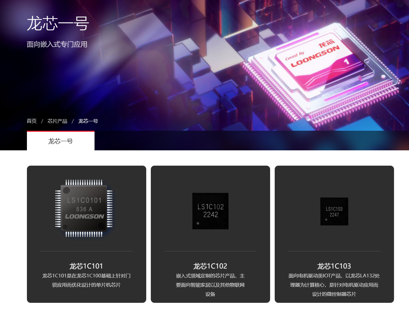 龙芯 1C102:嵌入式领域定制的芯片产品,主要面向智能家居以及其他物联网设备