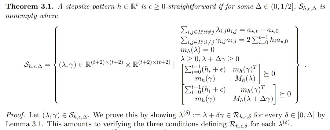 在具体操作中,设计可证明的更快非恒定步长梯度下降方法相当于寻找具有很大平均步长值的直接(straightforward)步长模式。证明给定的模式很简单,可以利用半定规划来完成,参见定理 3.1。