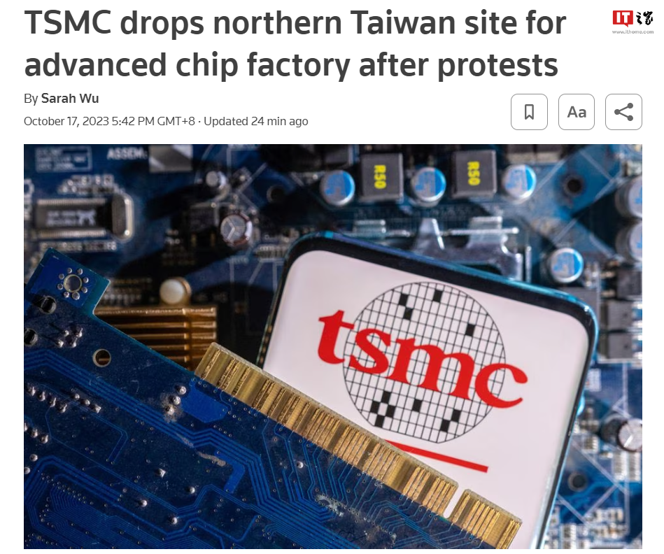 因当地居民抗议,台积电放弃台湾地区北部先进芯片工厂选址