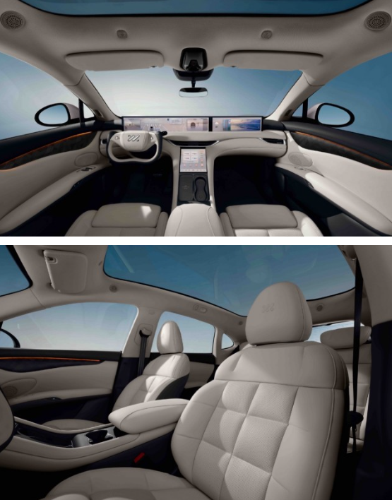 新车的内饰延续了家族设计风格,并且引入了官方所称的“全画幅数字驾驶舱”概念。它配备了IM OS 2.0智舱系统,搭载了高通8155车载芯片,并且还配置了一块42英寸的独立升降大屏幕
