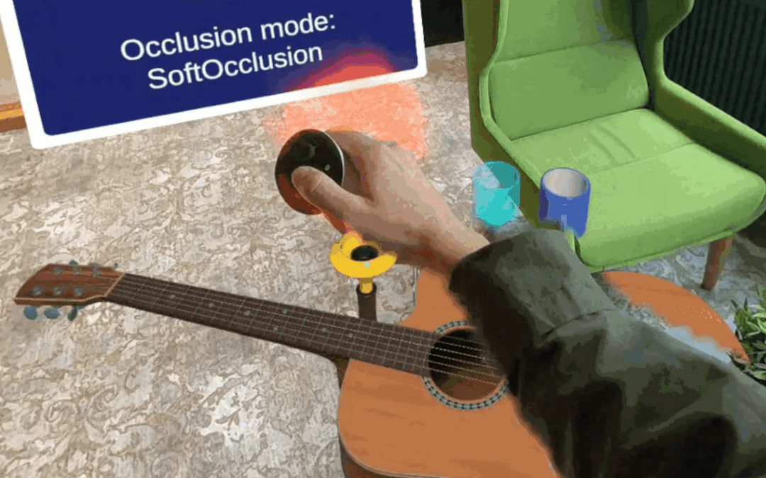 新的Depth API为开发者提供了由头显从其角度生成的每帧粗略深度图。这可用于实现遮挡,既适用于移动对象,也适用于静态对象的更精细细节,因为这些细节可能没有在场景网格中捕获。