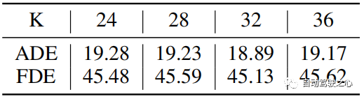 K 中心点中的簇数 我们研究了设置不同数量的初始簇K的效果,如表5所示。 我们可以注意到,初始簇数对预测结果并不敏感,尤其是当初始簇数为 24-36 时。 因此,我们在实验中可以将K设置为32。