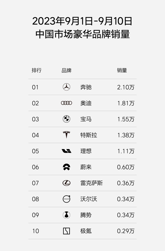理想汽车持续领跑 中国豪华车市场稳居前五