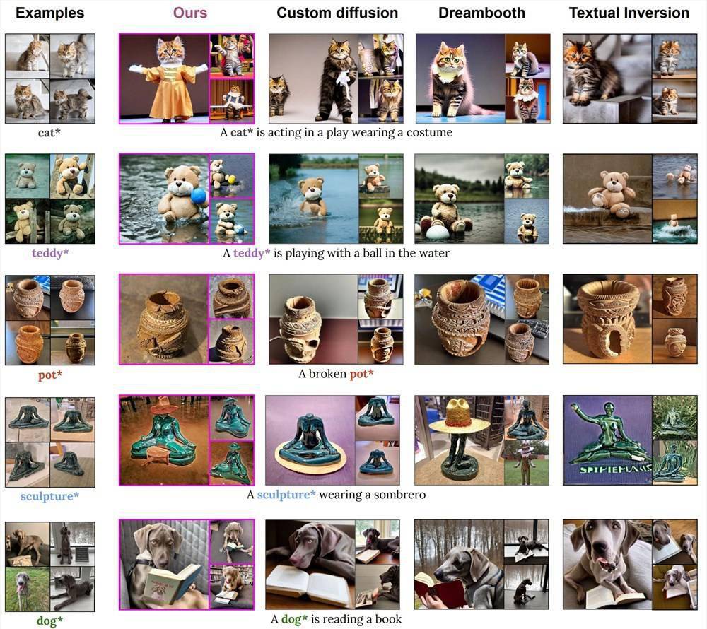 据报道,英伟达的研究人员与以色列的特拉维夫大学合作开发了这个模型。官方表示,Perfusion模型的图片质量与Stability AI的Stable Diffusion v1.5版本相当,而在效率方面,由于其小巧的体积,Perfusion模型在业界的效率处于领先地位