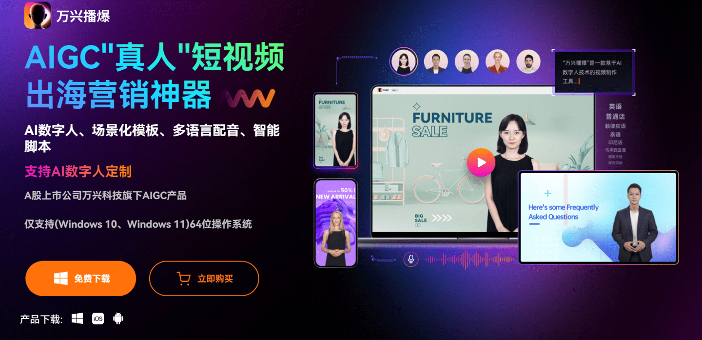 万兴播爆桌面端上线,支持AI数字人搜索、视频编辑等功能