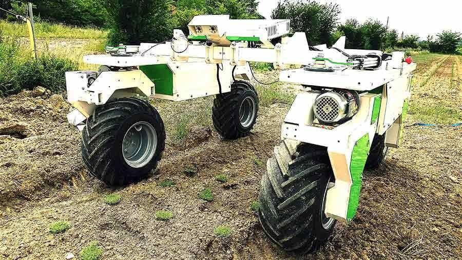 以除草机器人为例,德国农场中的除草机器人底部有三把除草的刀,除草时分两种模式:对待刚长出来的小草,就用刀片将其直接割下;对待已经成长起来的顽固杂草,则高速旋转刀头插入土地,直接将杂草连根捣碎,只留地面上一个个小小的洞口。
