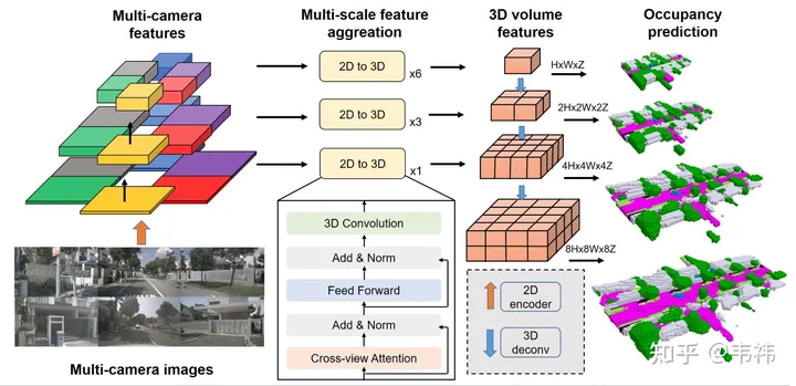 在这个工作中,我们通过多帧点云构建了稠密占据栅格数据集,并设计了基于transformer的2D-3D Unet结构的三维占据栅格网络。很荣幸地,我们的文章被ICCV 2023收录,目前项目代码已开源,欢迎大家试用。