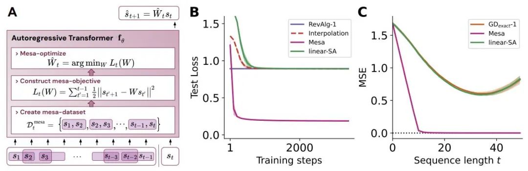 研究人员认为:Transformers 的成功基于其在前向传递中实现 mesa 优化算法的架构偏差:(i) 定义内部学习目标,以及 (ii) 对其进行优化。