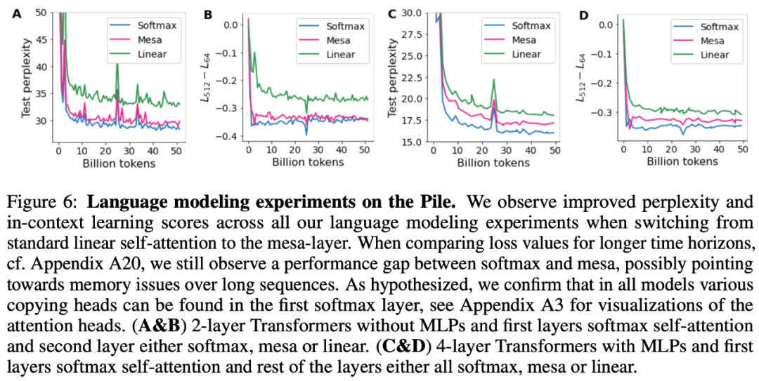 - 在初步的语言建模实验后发现,用 mesa 层替换标准的自注意力层获得了有希望的结果,证明了该层具有强大的上下文学习能力。
