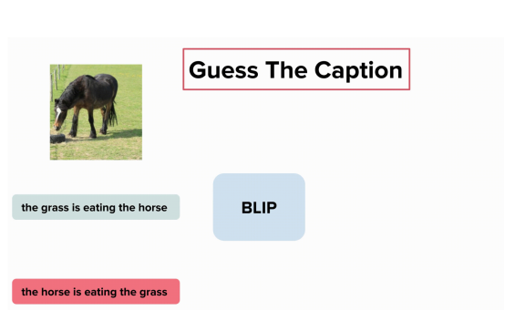 视觉语言模型能找到与图像匹配的正确标题吗?这项任务似乎很容易,我们希望模型能够理解“马在吃草”和“草在吃草”之间的区别,对吧?我的意思是,谁见过草在吃东西?