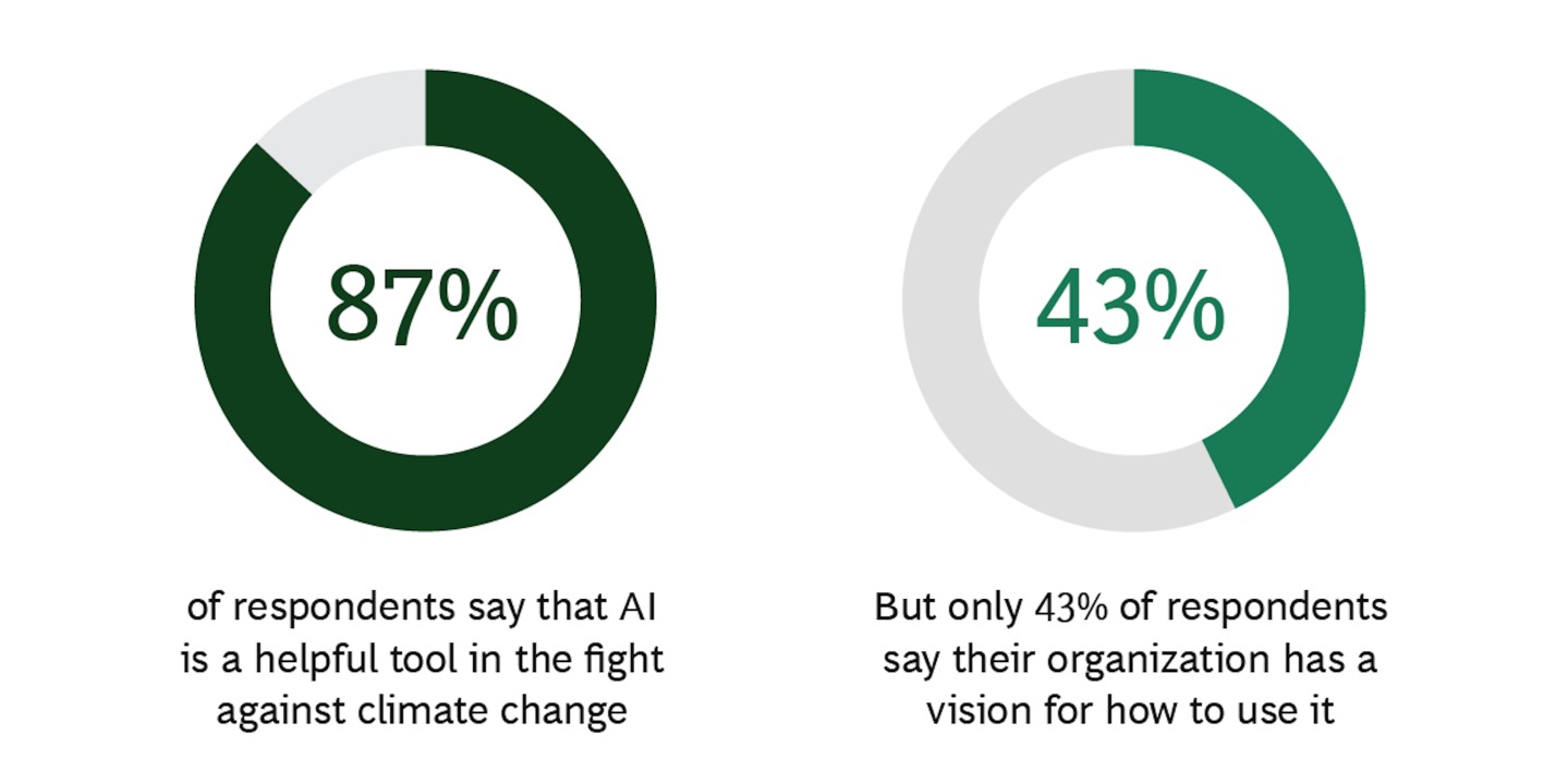 BCG(波士顿咨询集团)最近对全球1000名人工智能和气候领域的领导者进行了调查,让我们更多地了解了人工智能的潜力,以及前进道路上的障碍。调查发现,87% 的受访者认为高级分析和人工智能,或简称为“AI”,是当今应对气候变化的有用工具,但只有 43% 的受访者表示,他们有在自己的气候变化努力中使用人工智能的愿景努力。