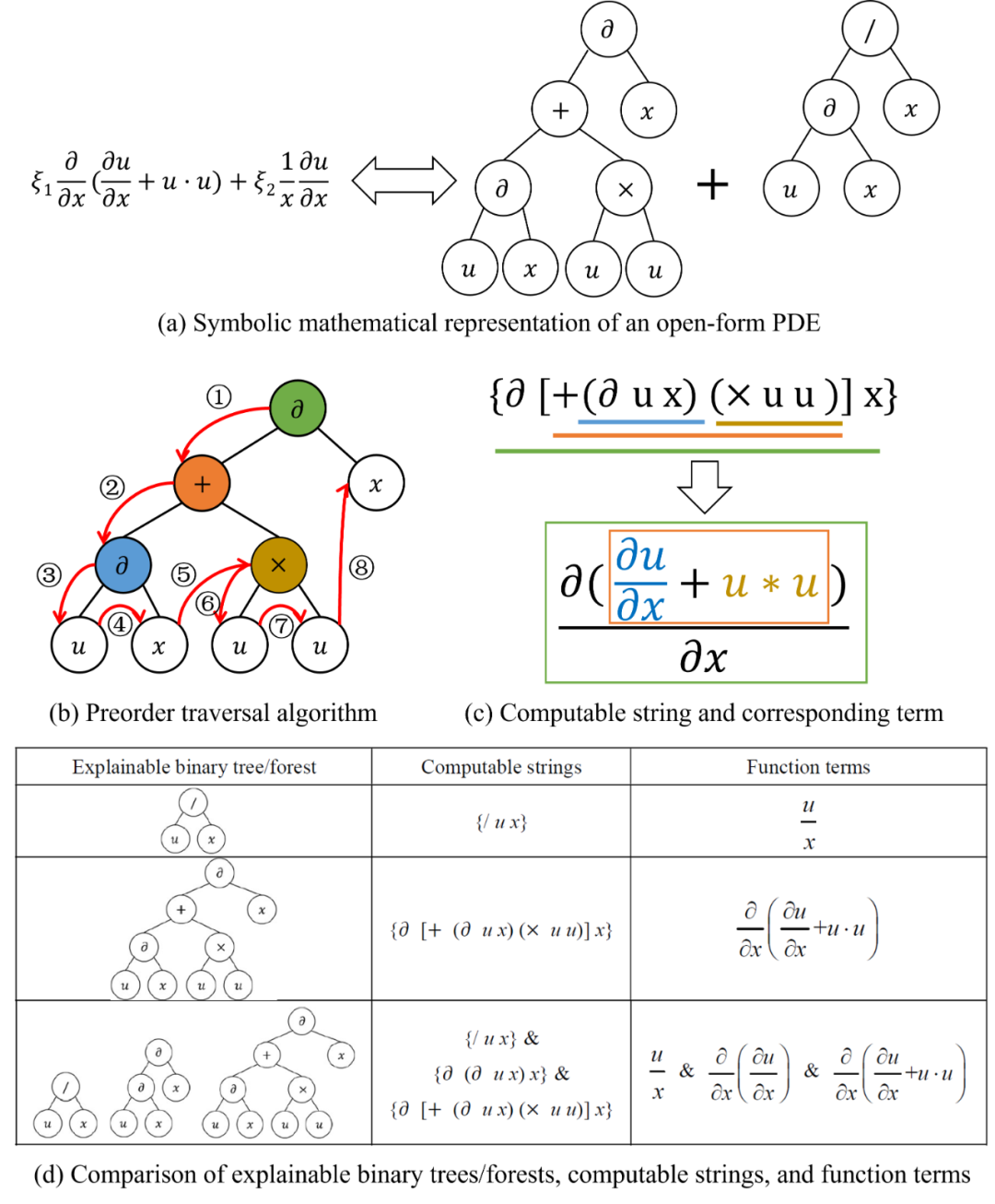 研究人员首先通过细化算法中方程的基本表示单元来表示开放形式的偏微分方程,将方程的表示尺度从独立的函数项层面转化为更基础的运算符和运算元层面。