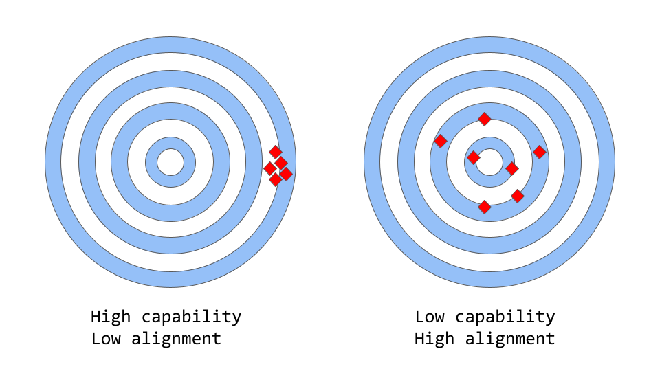 「一致性 vs 能力」可以被认为是「准确性 vs 精确性」的更抽象的类比。