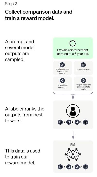 为了克服这个问题,使用的策略是让人工标注者对 SFT 模型的不同输出进行排序以创建 RM 模型,而不是让人工标注者创建一个更大的精选数据集。