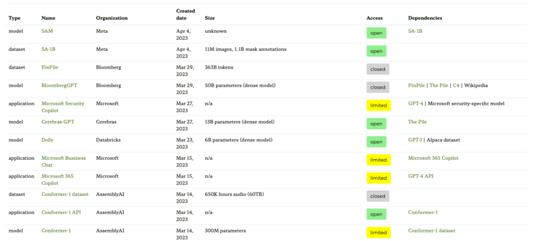 - 生态系统图网站地址:https://crfm.stanford.edu/ecosystem-graphs/index.html?mode=table