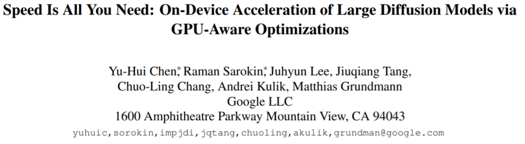 近日,谷歌发表的一篇论文中《 Speed Is All You Need: On-Device Acceleration of Large Diffusion Models via GPU-Aware Optimizations 》,他们实现了在 GPU 驱动的设备上运行 Stable Diffusion 1.4 ,达到 SOTA 推理延迟性能(在三星 S23 Ultra 上,通过 20 次迭代生成 512 × 512 的图像仅需 11.5 秒)。此外,该研究不是只针对一种设备;相反,它是一种通用方法,适用于改进所有潜在扩散模型。