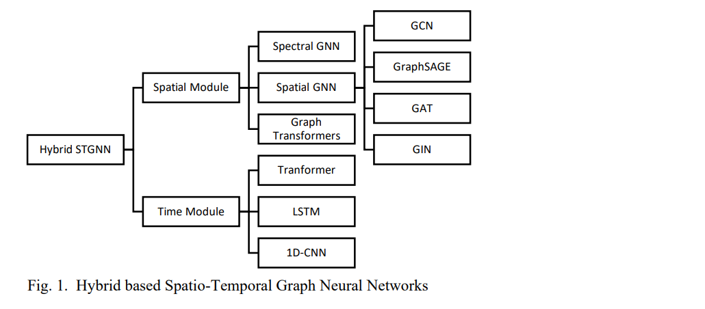 混合时空图神经网络由两个主要组件组成:空间组件和时间组件。在混合时空图神经网络中,利用图神经网络算法对数据中的空间依赖关系进行建模。