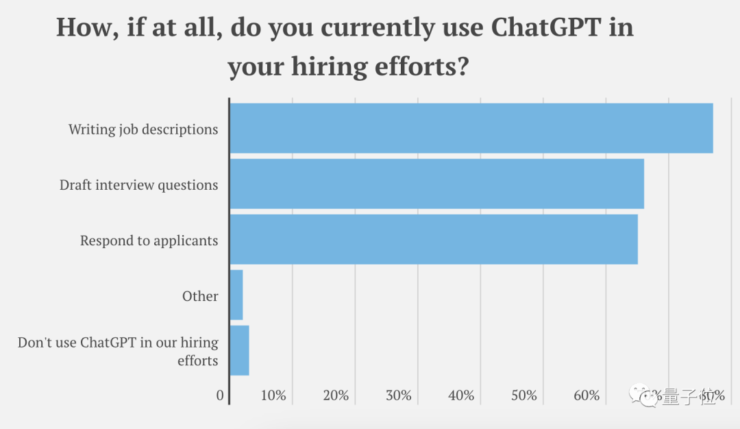 还没完呢——ChatGPT甚至还参与了招聘,比如撰写职位描述、回复求职者等等。结果,有77% 的人说这有助于他们撰写职位描述……(不知道HR是喜是忧)