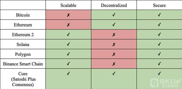 APP下载 官网注册------Core为了解决区块链的不可能三角问题,融合了比特币PoW和以太坊DPoS两条链的共识优势,提出了Satoshi Plus共识,完美解决了去中心化、安全性、可扩展性的三角困境。