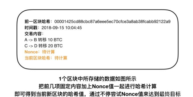 节点记账需要将交易数据打包进新的区块,而产生新的区块要做的就是生成新区块的哈希值,这就需要把上一个区块的哈希值、时间戳、要打包的交易以及Nonce值当作输入进行哈希运算来生成新区块的哈希值,而新生成的哈希值需要满足某个标准才算成功,这里的Nonce值是唯一的变量,所谓计算就是不断代入不同的Nonce值,直到得出符合要求的哈希值为止与其说叫计算不如叫猜更准确一些。所以算力更强的节点可以在同等时间内代入更多的数值,算出正确结果的概率也会更高一些。
