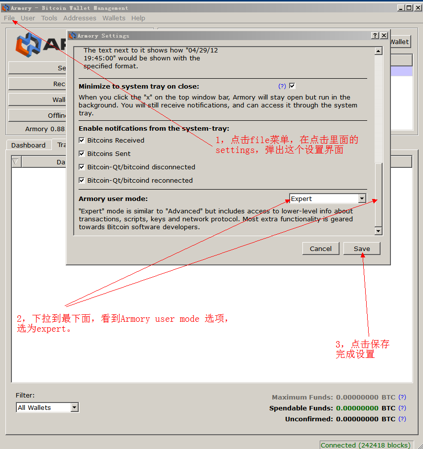 这个目的是好的,但是和我用脑钱包的初衷完全背离:我用脑钱包的目的就是想让我的BTC永远的和我的那句暗号绑在一起,现在它给我转到别的地址去了!这太扯了!于是我决定找找看Armory上是否有不找零的设置选项,还真的找到了,终于解决了问题。具体设置如图1.9-1.10: