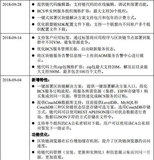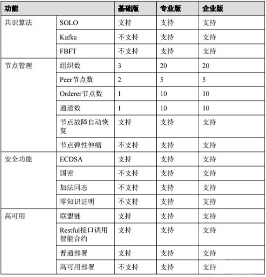 华为云区块链服务BCS提供基础版、专业版、企业版供您选择使用,每个版本均有不的规格支持,请见下表: