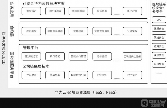 华为云IaaS和PaaS层,为区块链系统提供无限扩展的存储、高速的网络、按需购买弹性伸缩和故障自动恢复的节点等区块链资源。