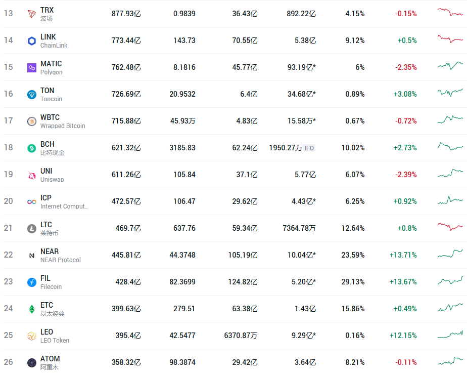 | 14 | ![]() LINK ChainLink | 773.44亿 | 143.73 | 70.55亿 | 5.38亿 | 9.12% | 0.5% | |