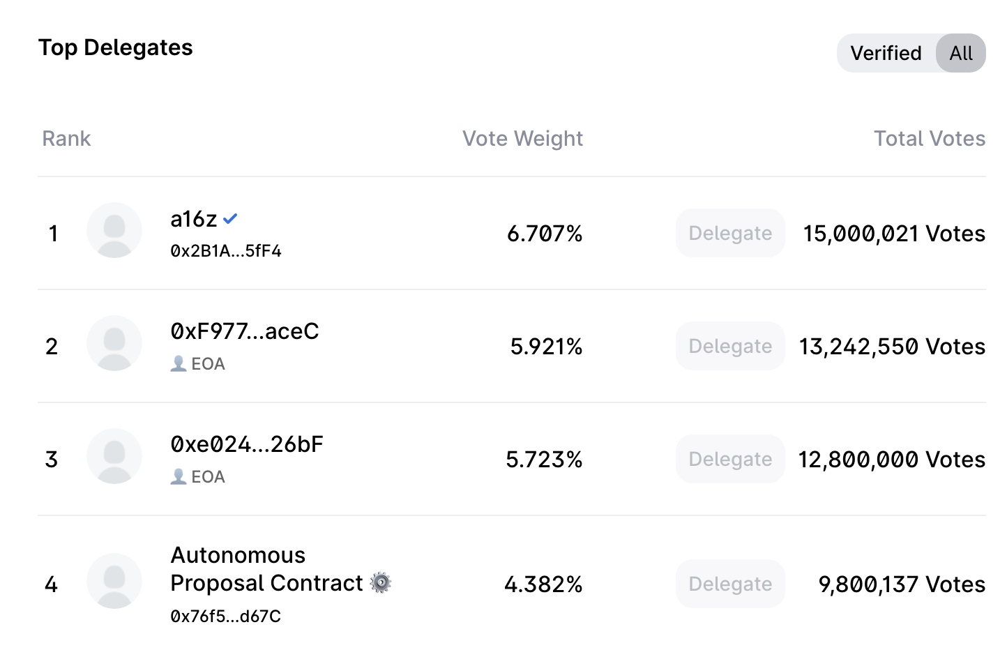 Uniswap DAO当前投票权重排名,币安排名第二