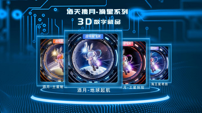 本次系列藏品共有4款,发行序列依次为酒月-地球起航(创世款)、酒月-火星探险、酒月-土星秘境、酒月-海王星奇旅,藏品整体呈3D动效形式,设计风格以最能代表元宇宙的赛博朋克风 超高精度主体造型,最大程度还原宇宙场景,藏品精美程度目前国内一流水平!双方希望能通过系列藏品让更多人感知宇宙的无限魅力!