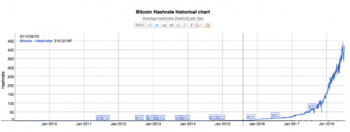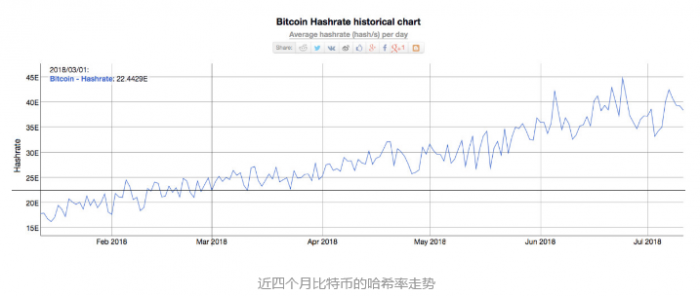 哈希率的稳步增加,离不开目前挖矿技术、相应硬件设备的升级,以及矿工不断寻求廉价电力等。据福布斯近日报道,尽管比特币的价格在2018年下跌,但是比特币的哈希率(衡量比特币网络处理能力的测量单位)仍呈持续增长趋势。今年6月份时,比特币的哈希率已超40 hash/s。在过去四个月的时间里,比特币的哈希率增长了100%以上,但是比特币的价格却在这段时间下跌了三分之一。这说明对于比特币矿工来说,开采比特币仍然是有利可图的,或者说起码矿工并没有放弃挖掘比特币。