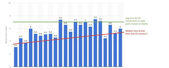 而初创企业从获得第一笔风险投资到退出的平均时间为 6 年。